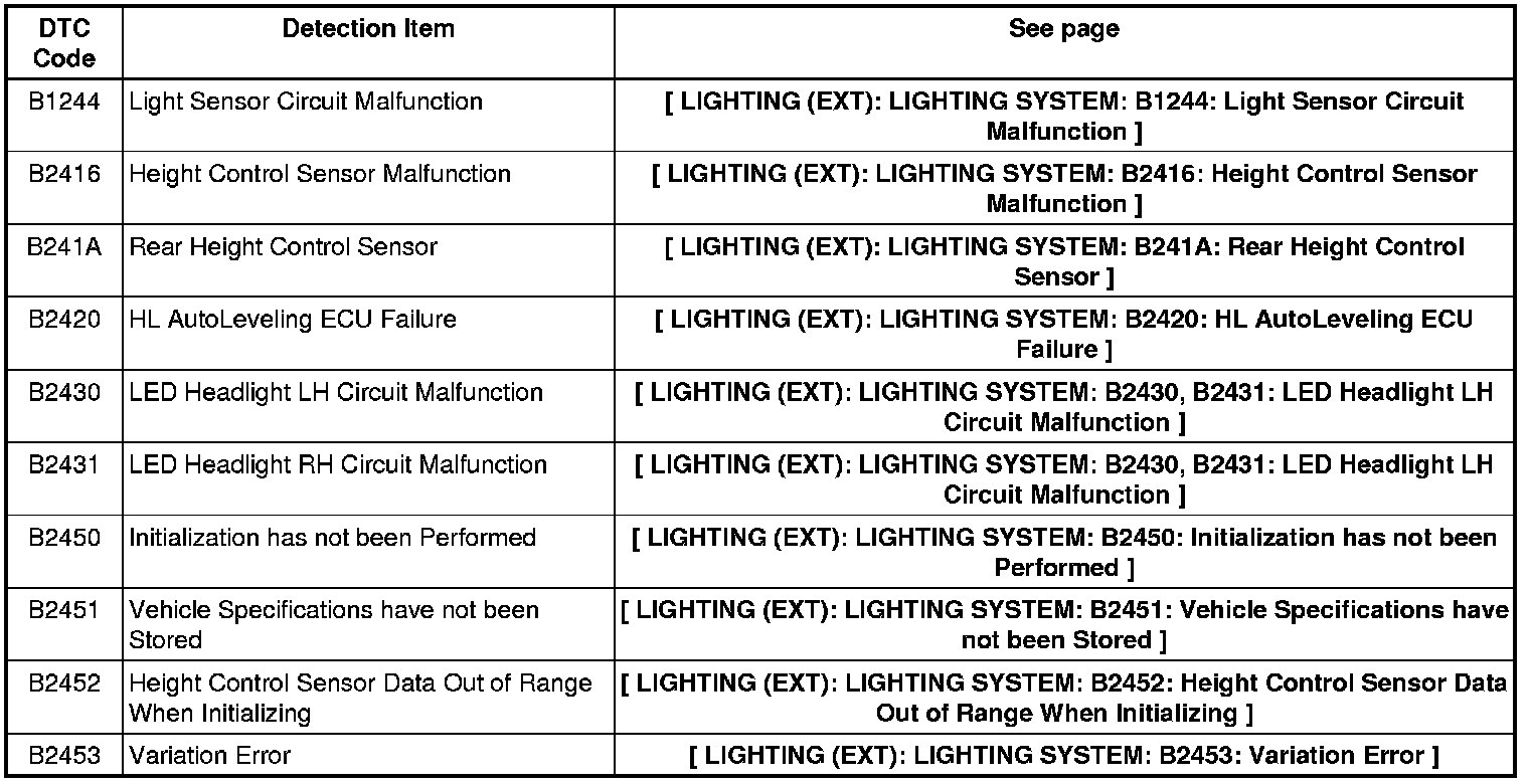 LIGHTING (EXT): LIGHTING SYSTEM: DIAGNOSTIC TROUBLE CODE CHART