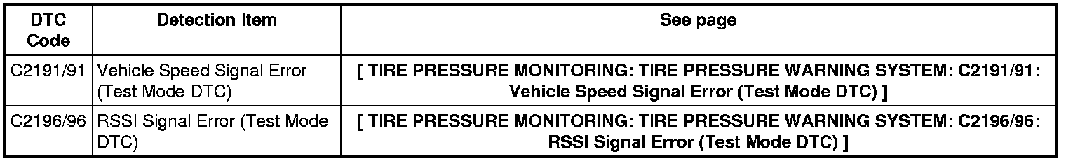 TIRE PRESSURE MONITORING: TIRE PRESSURE WARNING SYSTEM: DIAGNOSTIC TROUBLE CODE CHART