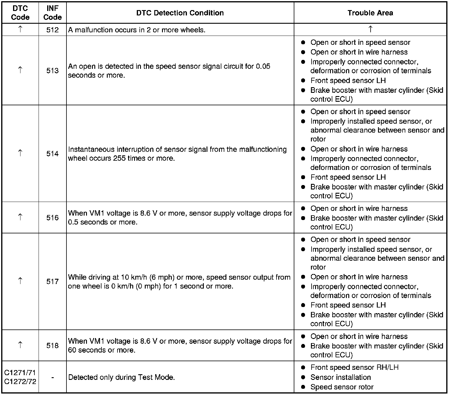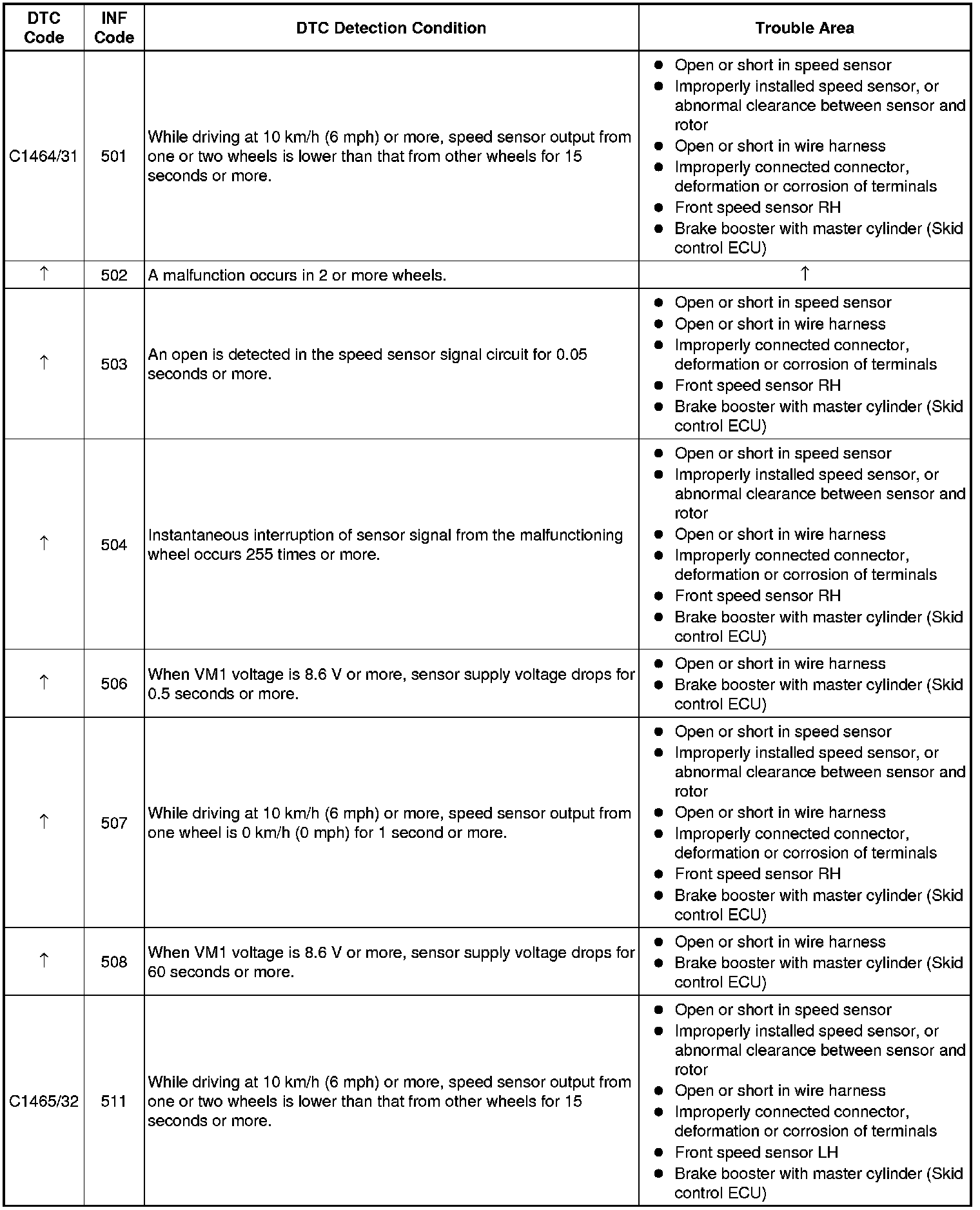 * DTCs C1465/32 and C1272/72 are for the front speed sensor LH.