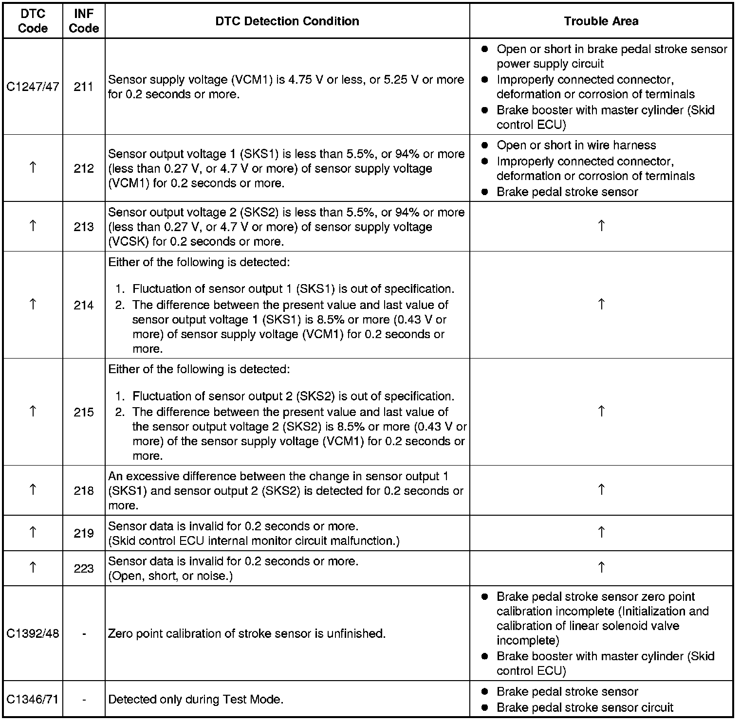 DTC C1346/71 will be cleared when the brake pedal stroke sensor sends a stroke sensor signal or when Test Mode ends. DTC C1346/71 is output only in Test Mode.