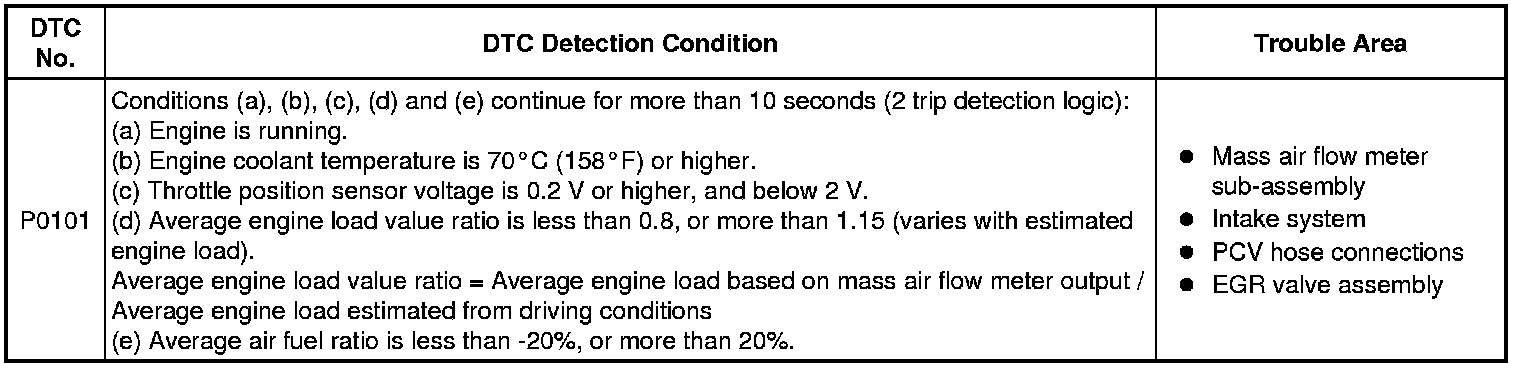 2ZR-FXE ENGINE CONTROL: SFI SYSTEM: P0101: Mass Air Flow Circuit Range / Performance Problem