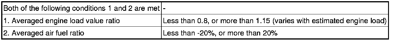 The ECM monitors the average engine load value ratio to check the mass air flow meter sub-assembly for malfunctions. The average engine load value ratio is obtained by comparing the average engine load calculated from the mass air flow meter sub-assembly output to the average engine load estimated from the driving conditions, such as the engine speed and the throttle opening angle. If the average engine load value ratio is below the threshold value, the ECM determines that the intake air volume is low, and if the average engine load value ratio is above the threshold value, the ECM determines that the intake air volume is high.