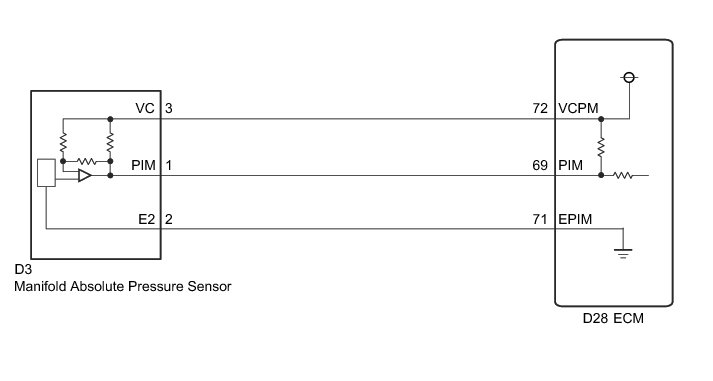 The manifold absolute pressure sensor detects pressure inside the intake manifold as an absolute pressure with a built-in sensor and outputs a voltage. Based on the voltage from the vacuum sensor, the ECM controls the air fuel ratio, and corrects any errors in the pressure sensor due to changes in pressure.