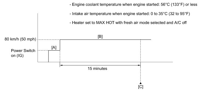 9. Start the engine and drive the vehicle at 80 km/h (50 mph) for 15 minutes [B].