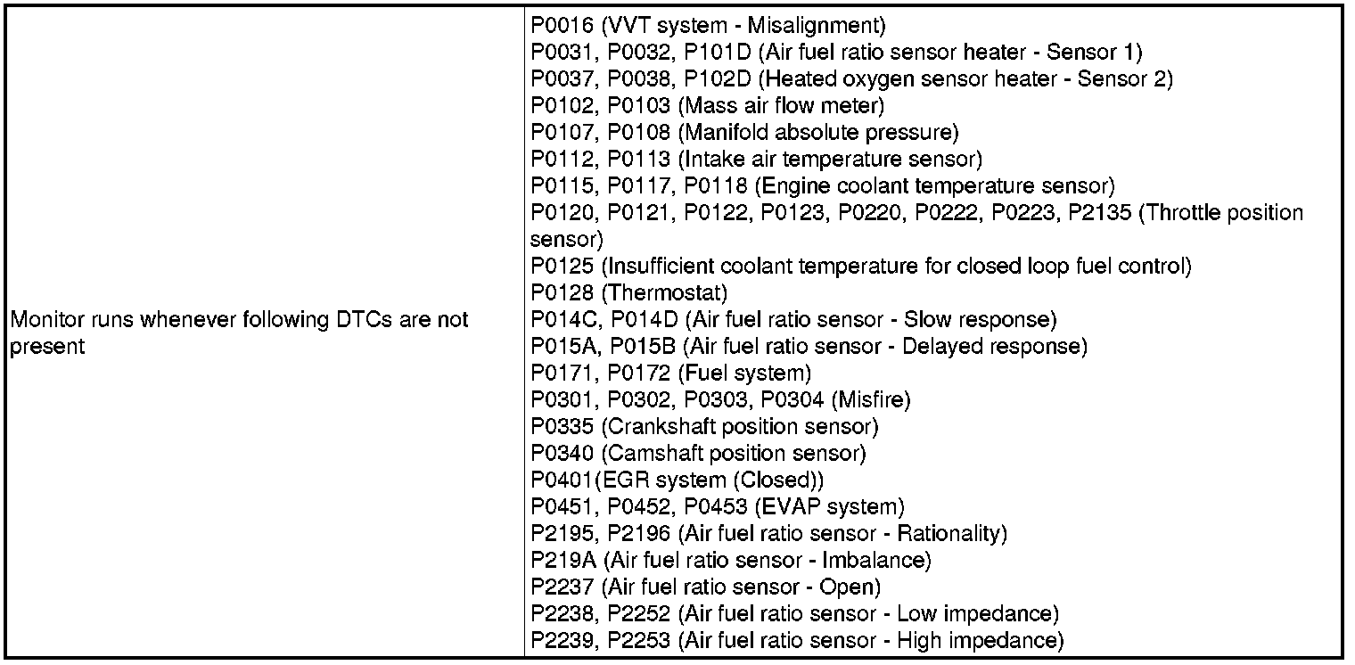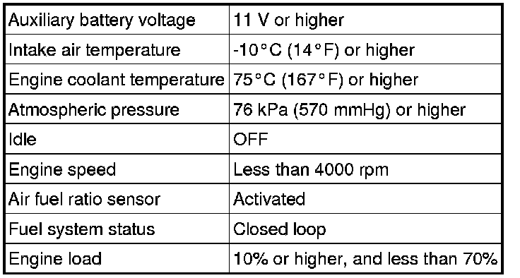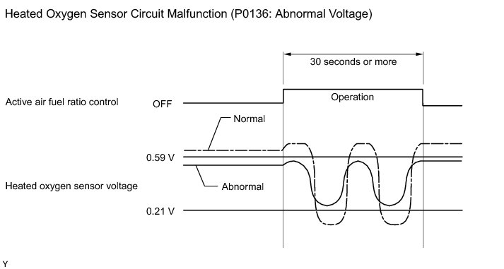 While the ECM is performing active air fuel ratio control, the air fuel ratio is forcibly regulated to become rich or lean. If the sensor is not functioning properly, the voltage output variation is small. For example, when the heated oxygen sensor voltage does not increase to higher than 0.59 V during active air fuel ratio control, the ECM determines that the sensor voltage output is abnormal and stores DTCs P0136.