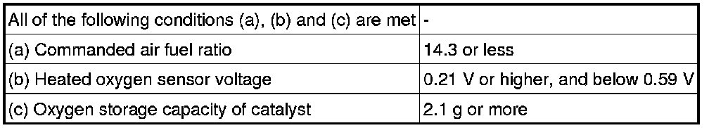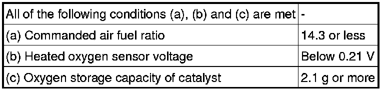 If the heated oxygen sensor has an open, or the voltage output of the sensor noticeably decreases, the oxygen storage capacity indicates an extraordinarily high value. Even if the ECM attempts to continue regulating the air fuel ratio to become rich or lean, the heated oxygen sensor output does not change.