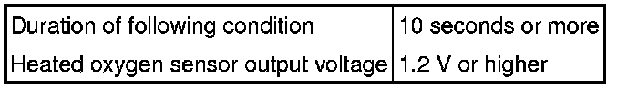 When the air fuel ratio becomes lean, the oxygen concentration in the exhaust gas is rich. The heated oxygen sensor informs the ECM that the post-three-way catalytic converter air fuel ratio is lean (low voltage, i.e. below 0.45 V).