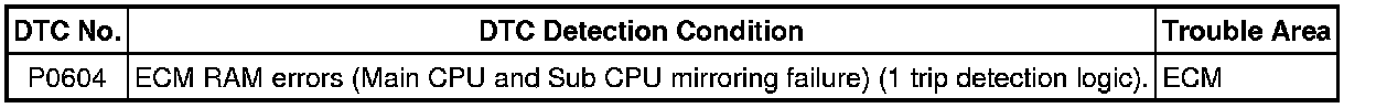 2ZR-FXE ENGINE CONTROL: SFI SYSTEM: P0604: Random Access Memory (RAM)