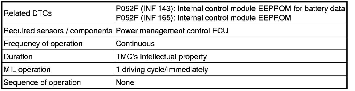 HYBRID / BATTERY CONTROL: HYBRID CONTROL SYSTEM: P062F-143, P062F-165: Internal Control Module EEPROM Error