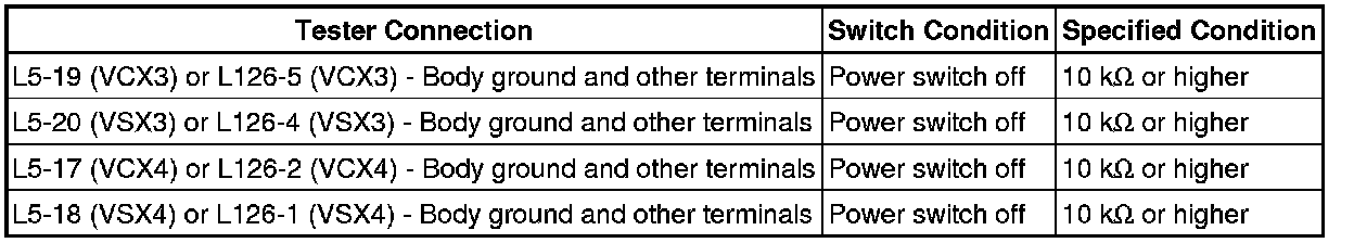 Turning the power switch on (IG) with the connector disconnected causes other DTCs to be stored. Clear the DTCs after performing this inspection.