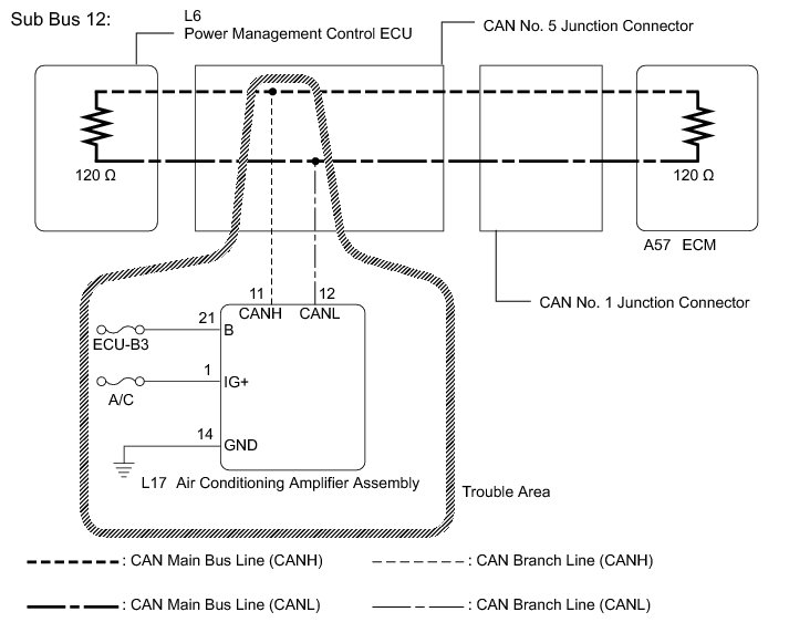 NG -- REPAIR OR REPLACE CAN BRANCH LINE OR CONNECTOR (AIR CONDITIONING AMPLIFIER ASSEMBLY)