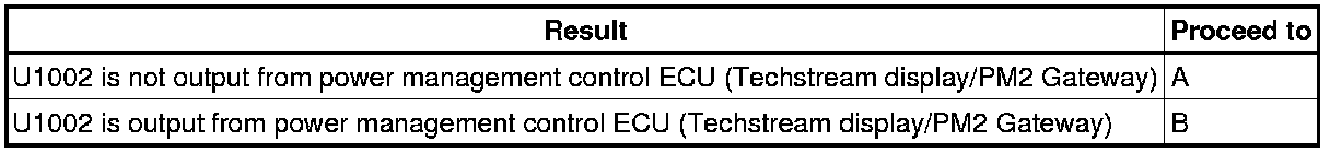 If DTC U1002 is output from PM2 Gateway of the power management control ECU, this indicates a sub bus 12 malfunction. Troubleshoot for DTC U1002 and check for malfunctions in sub bus 12.