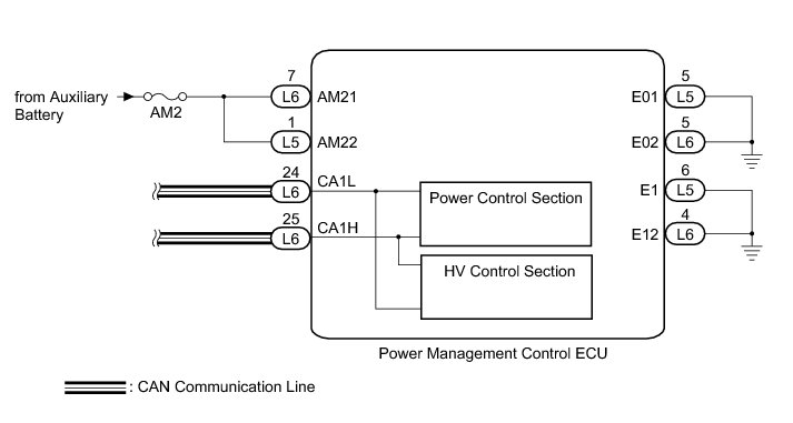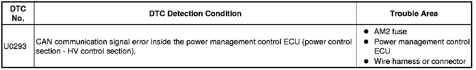 This DTC is stored when the power management control ECU detects a CAN communication error inside the power management control ECU (power control section - HV control section).