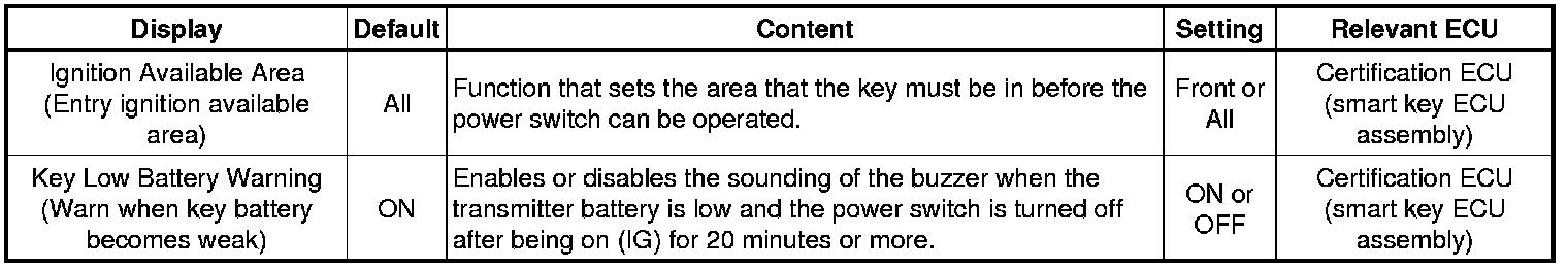 THEFT DETERRENT / KEYLESS ENTRY: SMART KEY SYSTEM (for Start Function): CUSTOMIZE PARAMETERS