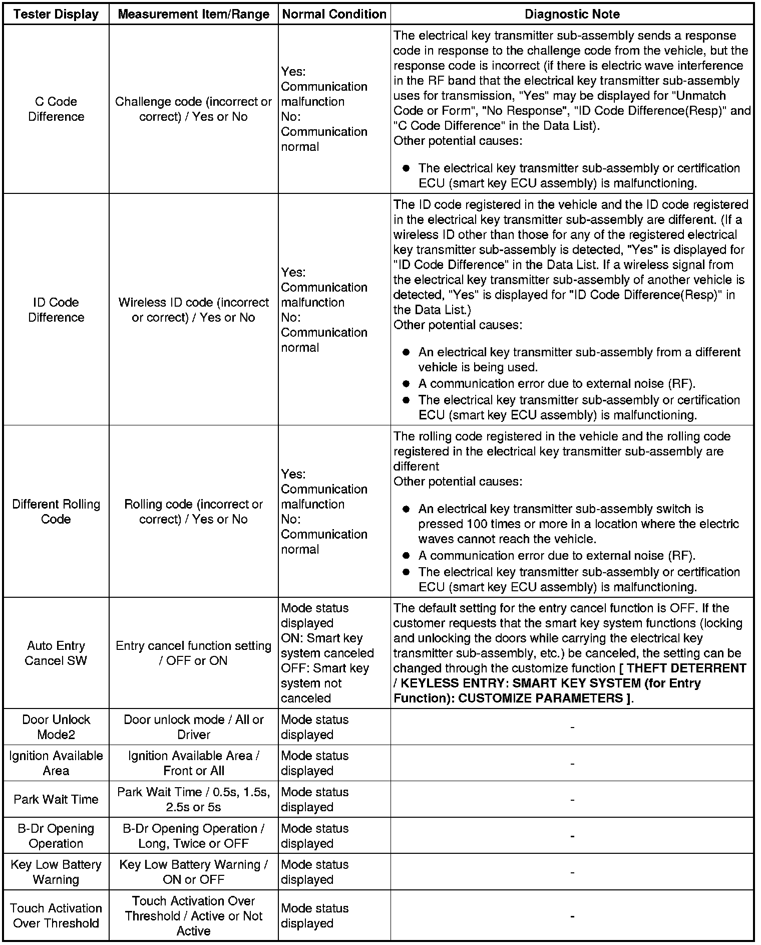 THEFT DETERRENT / KEYLESS ENTRY: SMART KEY SYSTEM (for Entry Function): DATA LIST / ACTIVE TEST