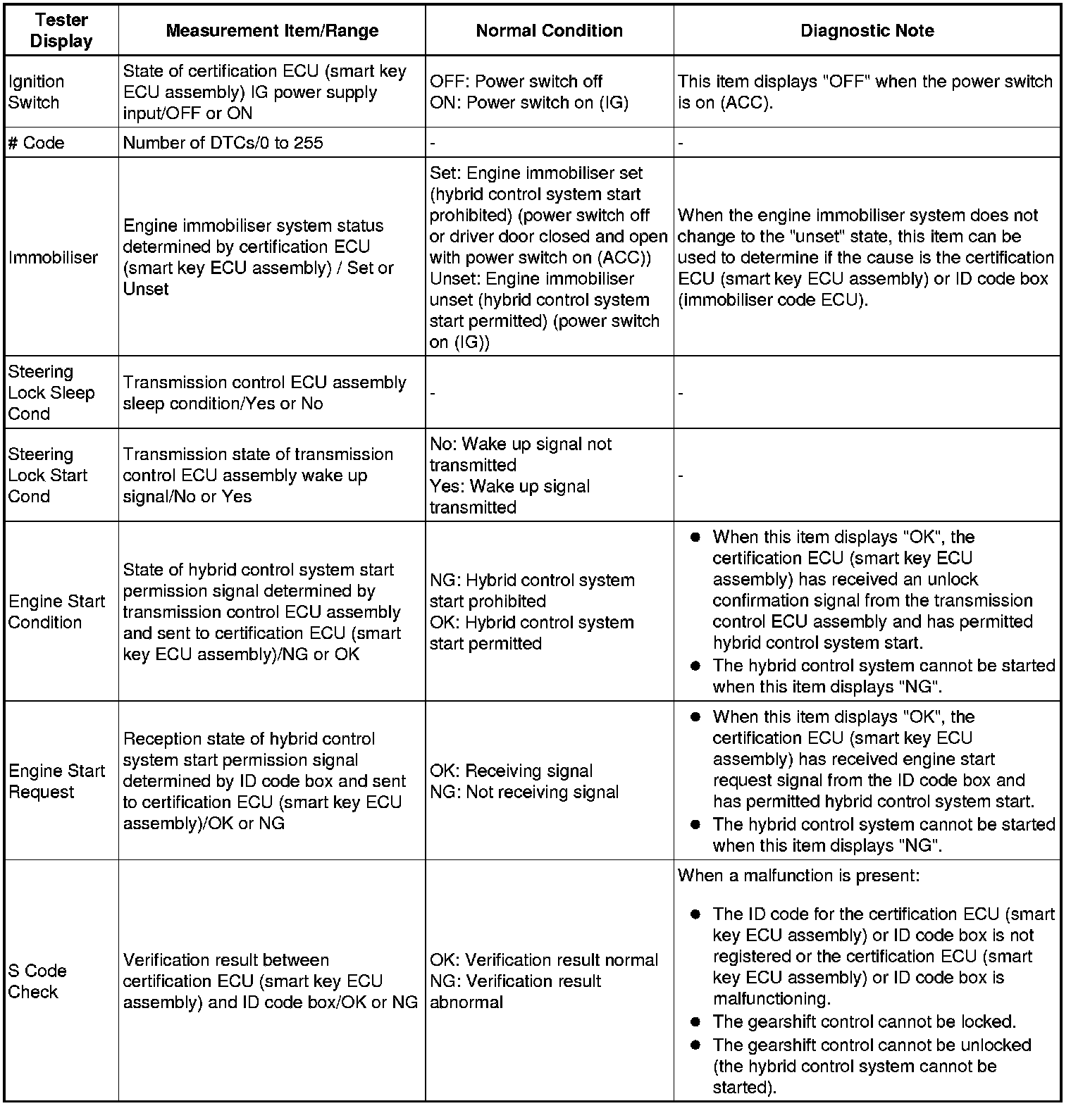 THEFT DETERRENT / KEYLESS ENTRY: SMART KEY SYSTEM (for Start Function): DATA LIST / ACTIVE TEST