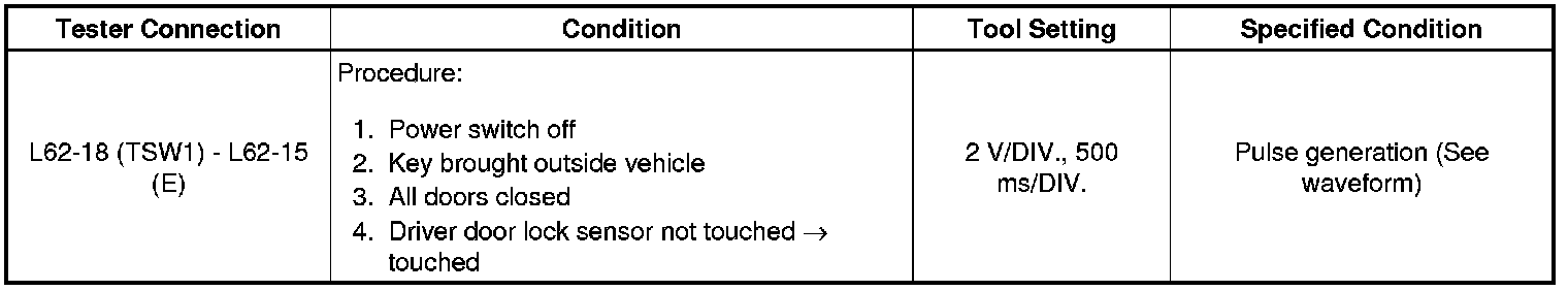 4. CHECK FRONT DOOR OUTSIDE HANDLE ASSEMBLY (FOR DRIVER DOOR) (DRIVER DOOR LOCK SENSOR SIGNAL INPUT)