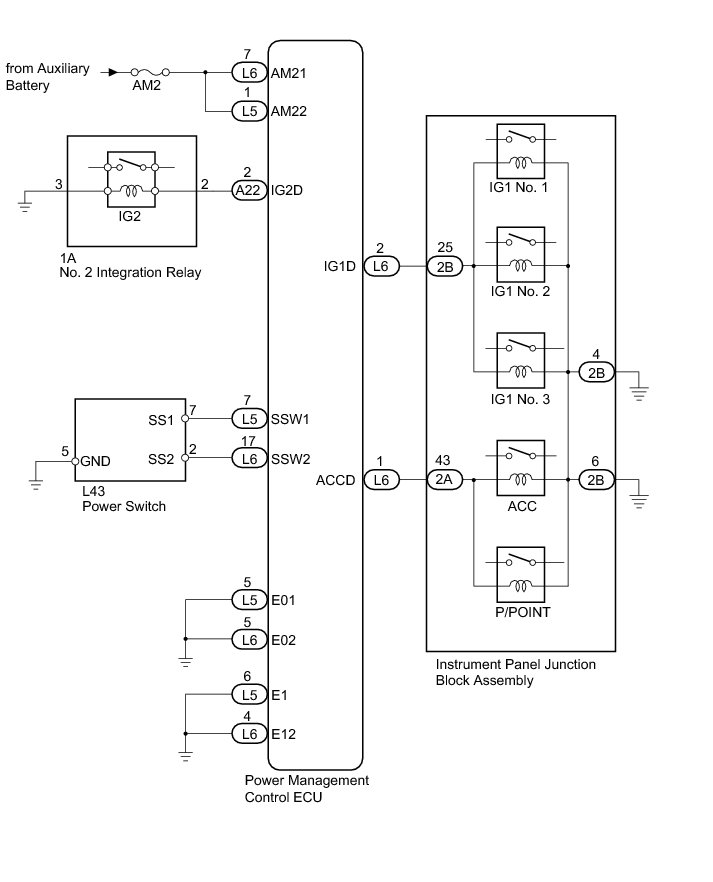 (a) Disconnect the L5 and L6 connectors from the power management control ECU.