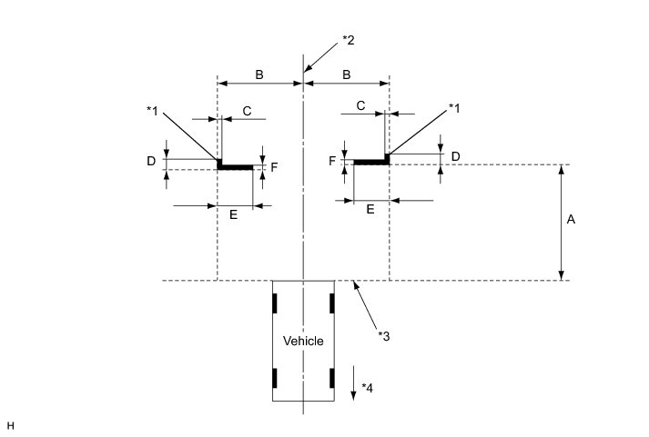 * If the left and right parallelograms (A) and the corners of the target bars (C) do not match, make the gaps between each parallelogram (A) and the target bars equal on the left and right sides.