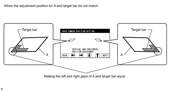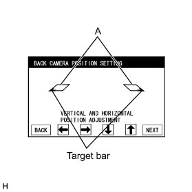 (2) Select "NEXT" on the "BACK CAMERA POSITION SETTING" (VERTICAL AND HORIZONTAL POSITION ADJUSTMENT) screen.
