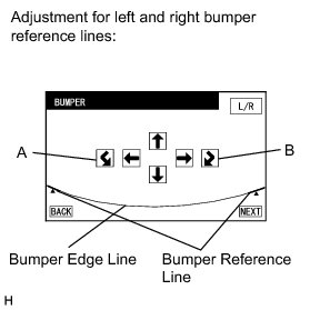* If the bumper reference lines do not overlap or contact the bumper edge line, select "L/R" to perform bumper reference line position adjustment (individual adjustment).
