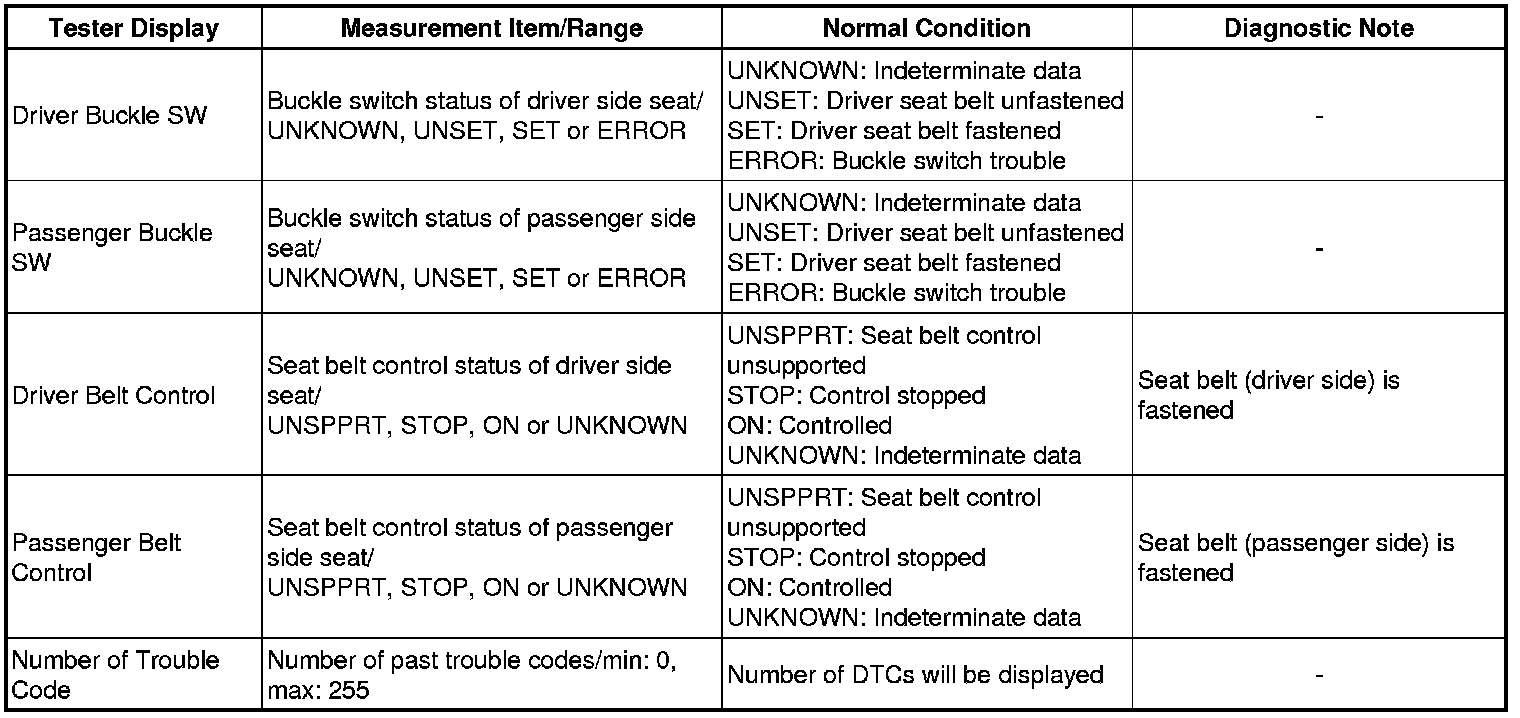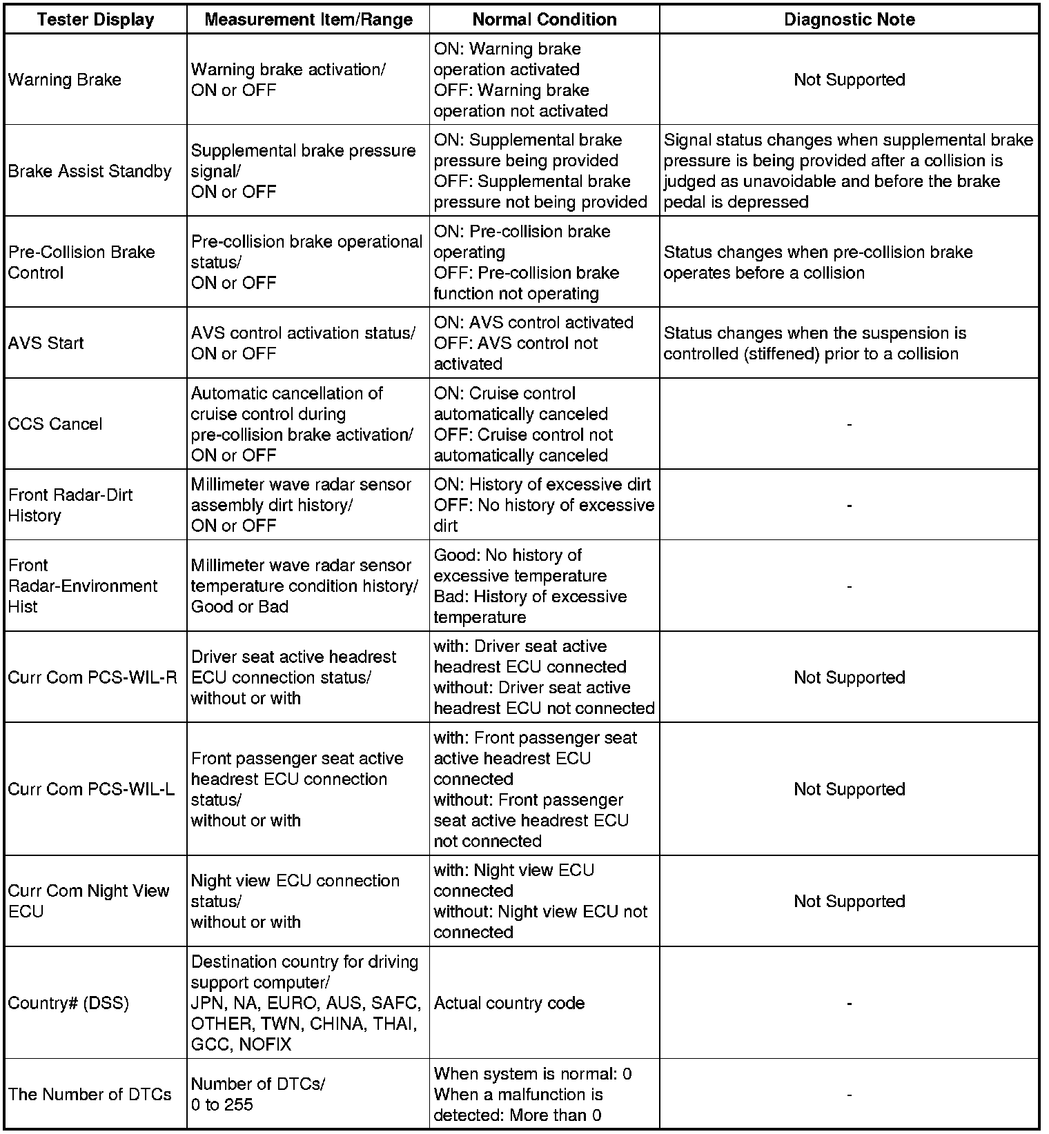 As the driving support ECU and seat belt control ECU both have Data List for the pre-collision system, be sure to check the Pre-Collision and Pre-Collision 2 Data Lists.