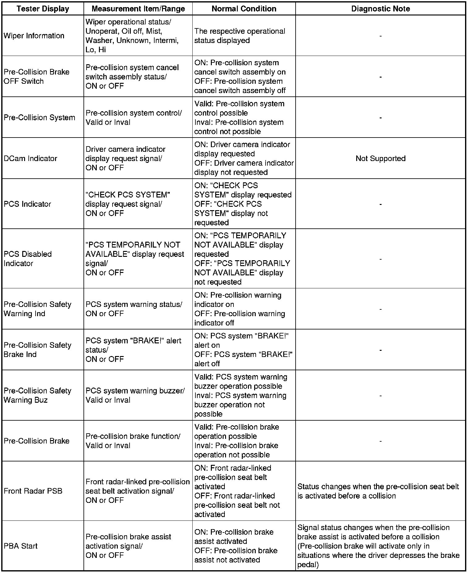 (2) for Pre-Collision 2: Body Electrical / Pre-Collision 2 / Data List.