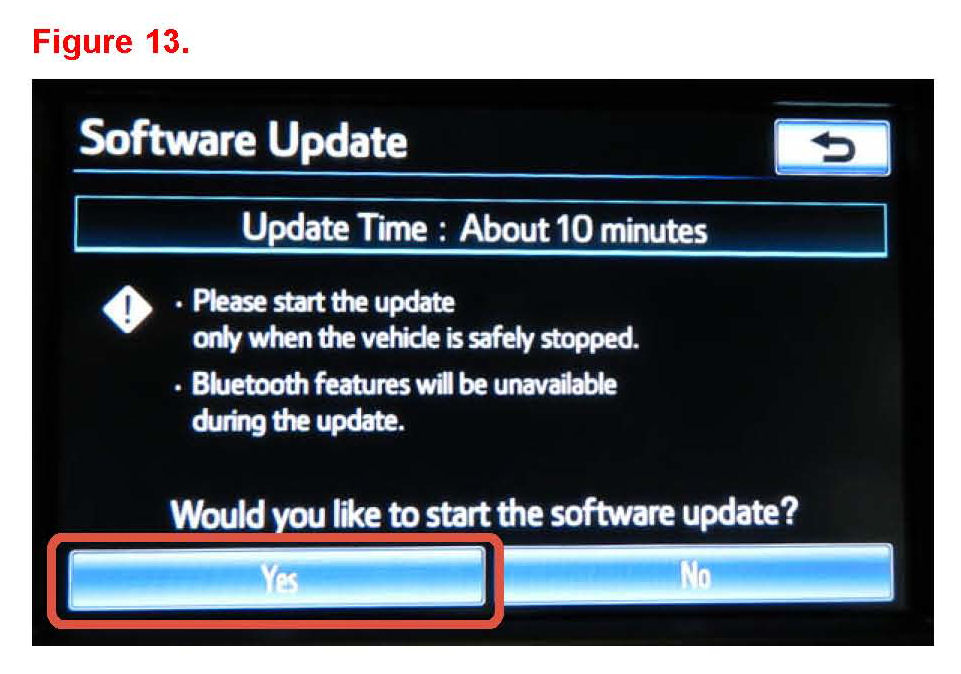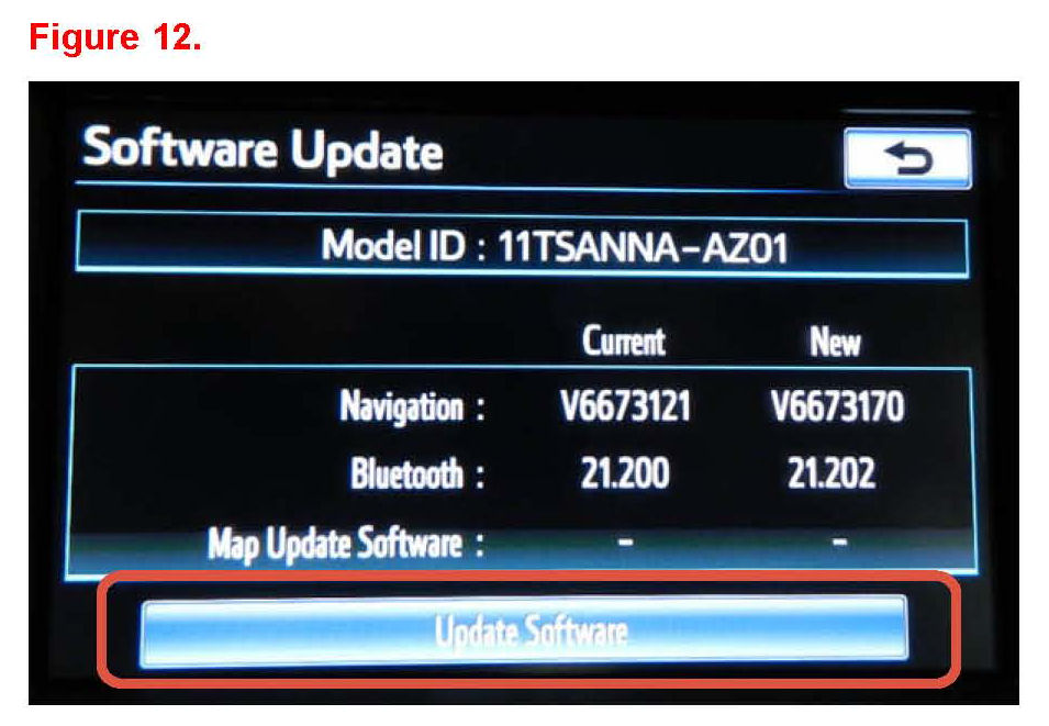 If AVN radio is currently in the "software update" screen, then proceed to step 8.
