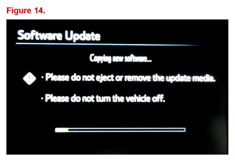 11. Software Update screen will show "Copying new software...". Please do not turn off the vehicle.