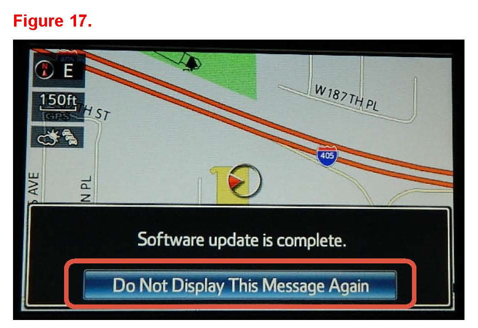 14. The Map will display once the update is complete. Press "Do Not Display This Message Again".