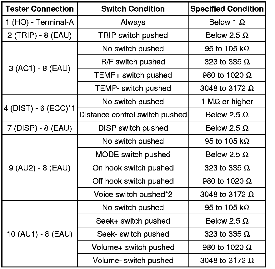 * *1: w/ Distance Control Switch of Steering Pad Switch Assembly