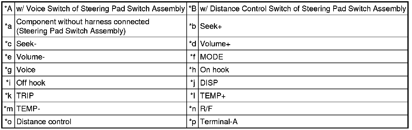 * *2: w/ Voice Switch of Steering Pad Switch Assembly