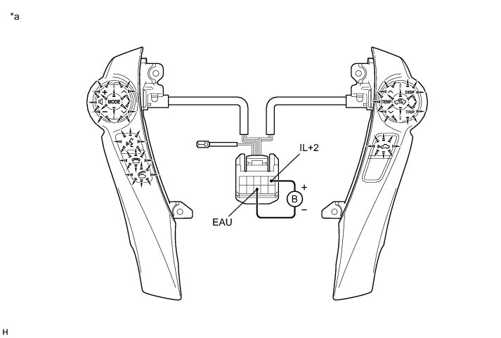 (1) Connect an auxiliary battery positive (+) lead to terminal IL+2 and a negative (-) lead to terminal EAU of the steering pad switch assembly connector.