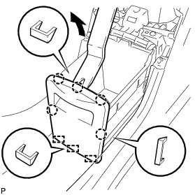 (a) Using a moulding remover, disengage the 10 claws and remove the console rear end panel sub-assembly.