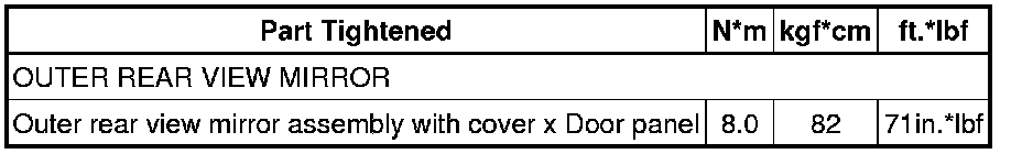 SPECIFICATIONS: MIRROR (EXT): TORQUE SPECIFICATIONS