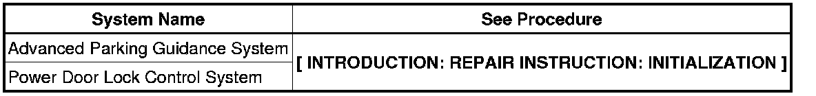 When disconnecting the cable from the negative (-) auxiliary battery terminal, initialize the following system after the cable is reconnected.