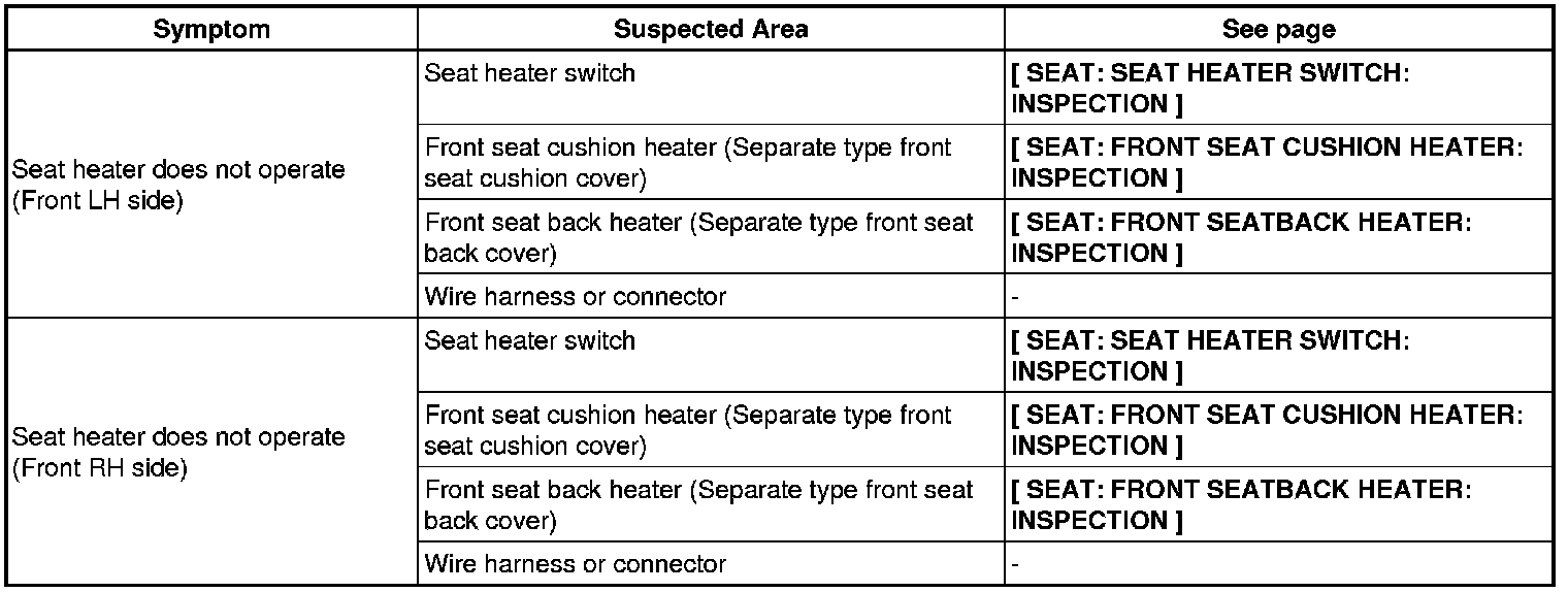 SEAT: SEAT HEATER SYSTEM: PROBLEM SYMPTOMS TABLE