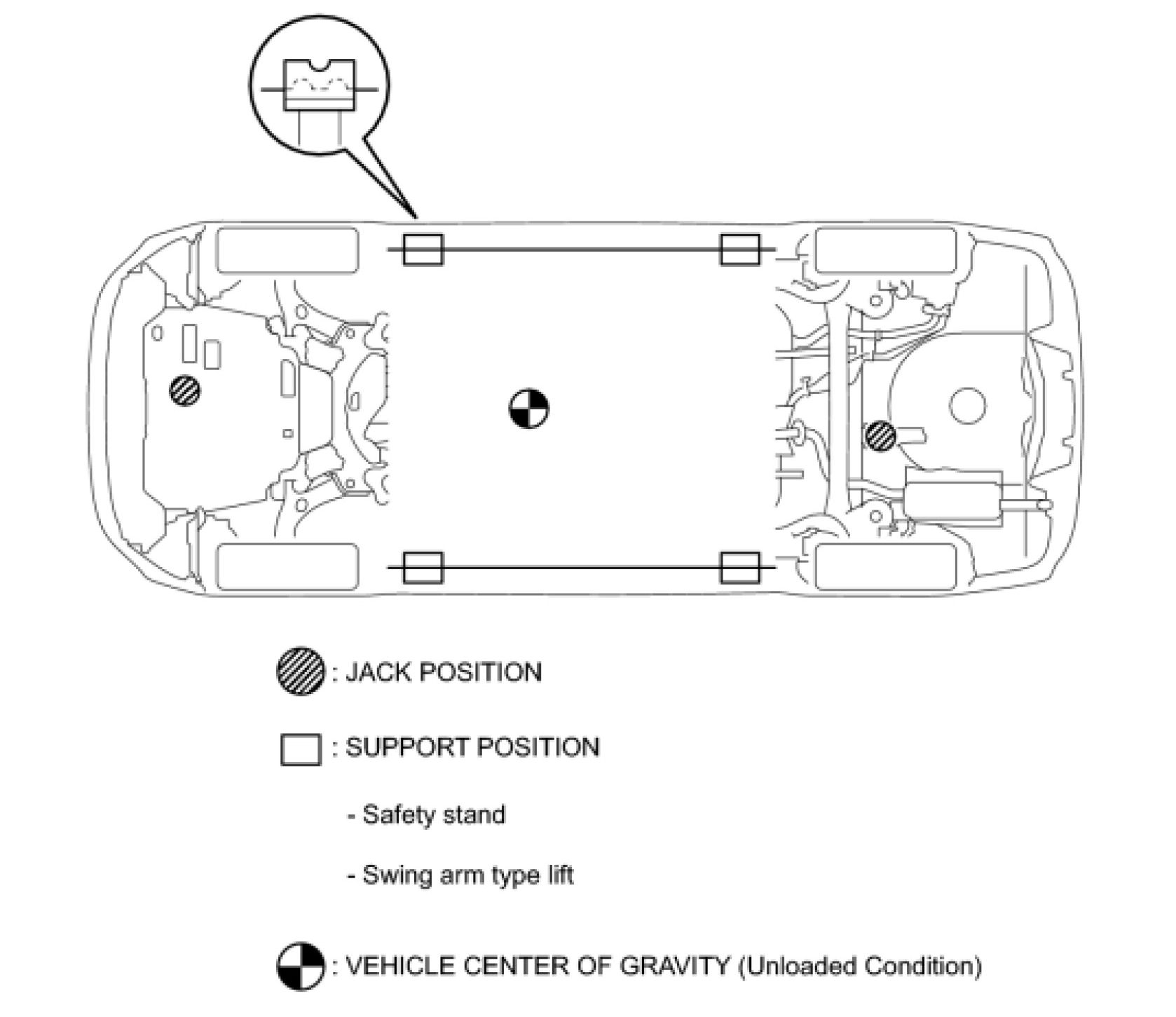 (c) Set the jack and safety stands exactly under the specified locations on the vehicle.