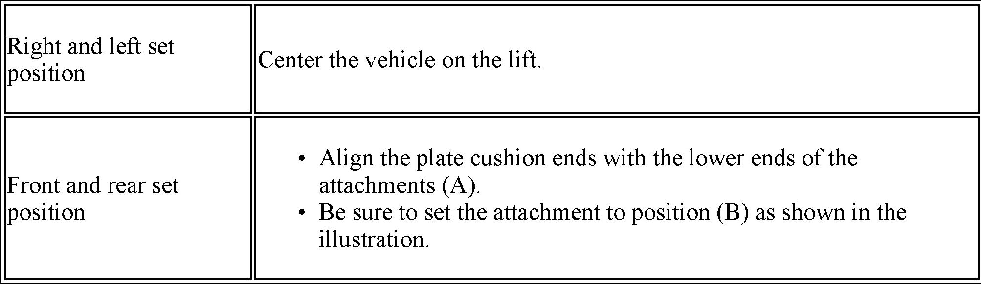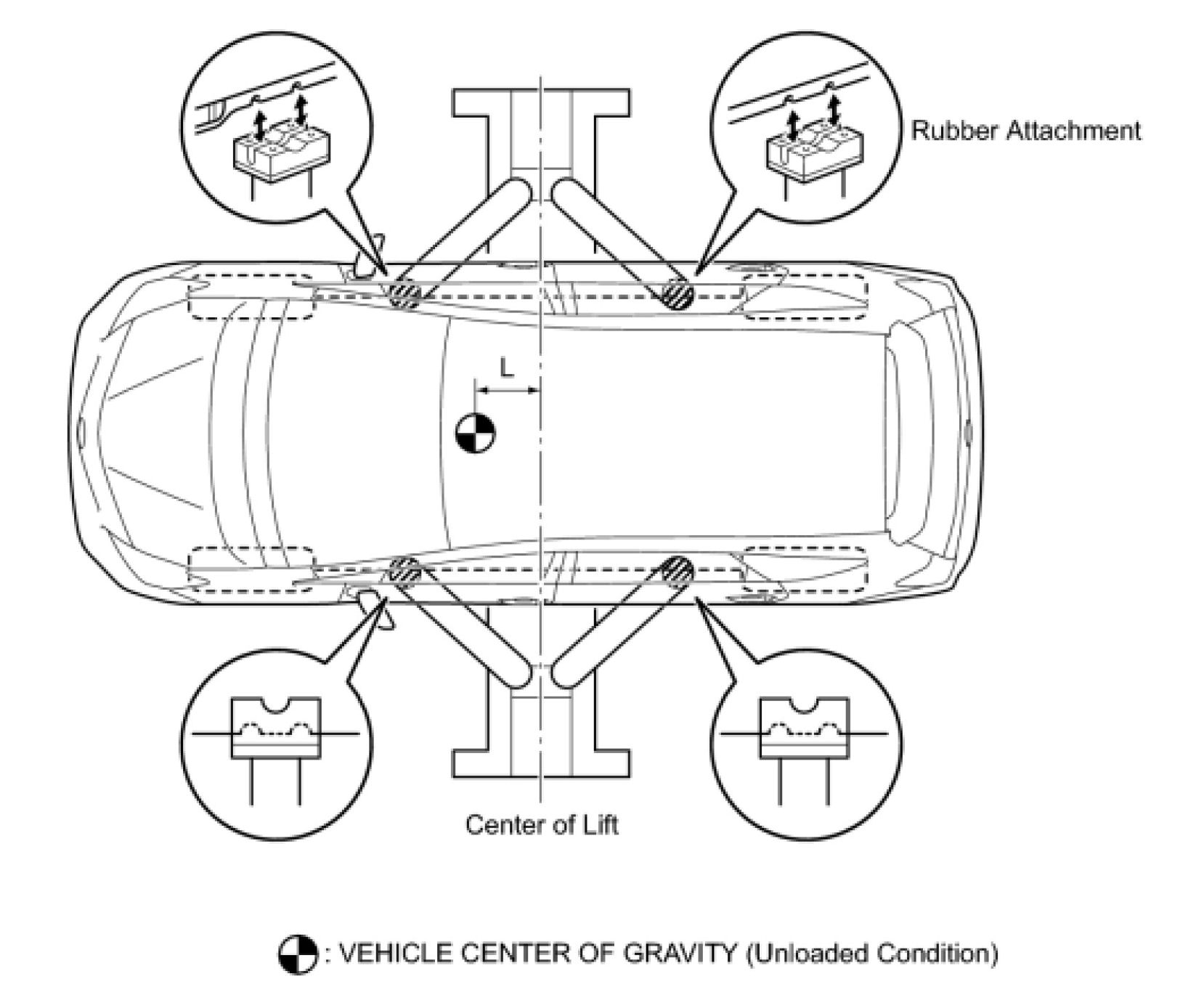 (c) Position the vehicle so that its center of gravity is centered on the lift (length of "L" in the illustration should be as short as possible).