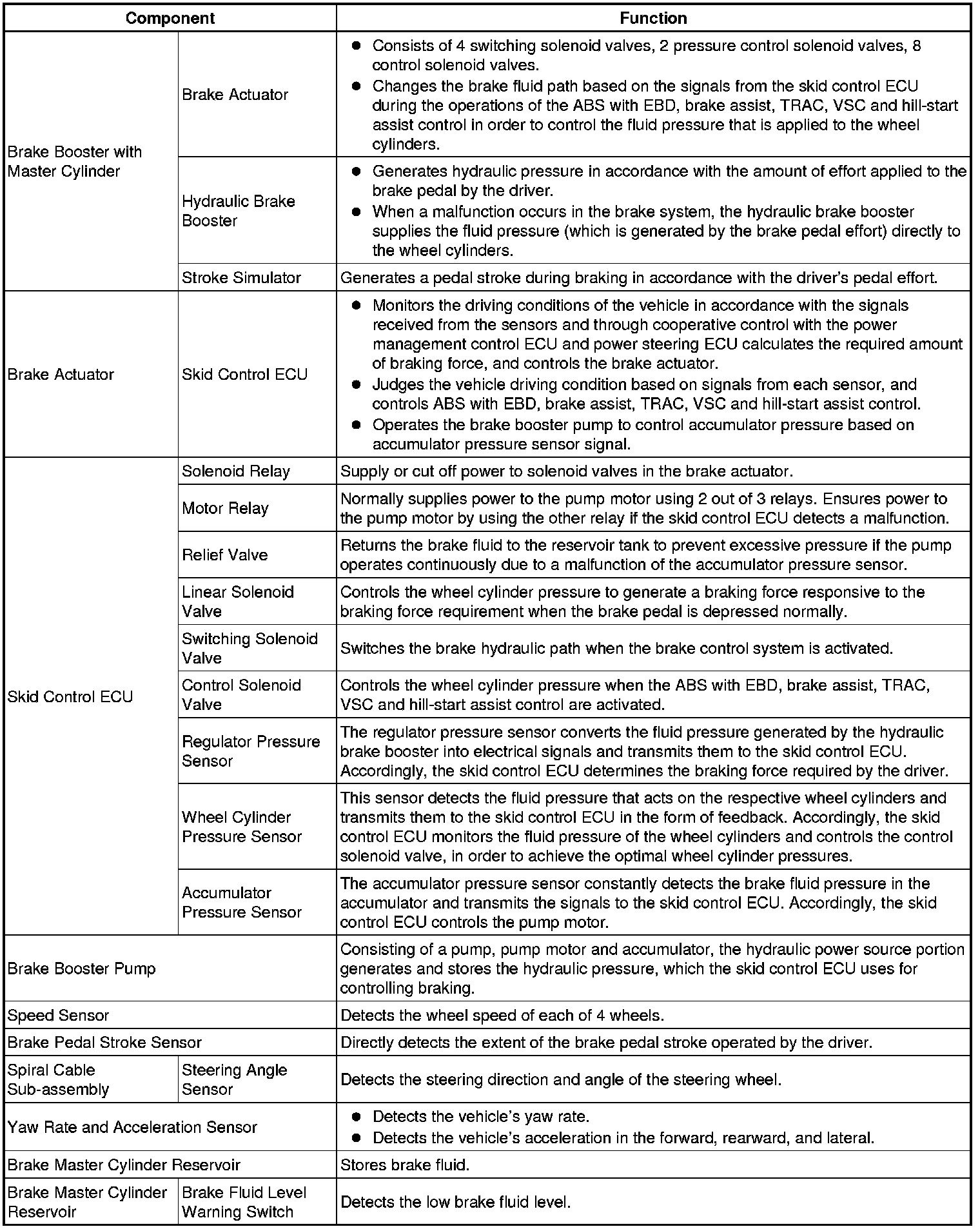 (1) Upon receiving signals from the skid control ECU, this system effects hydraulic pressure control at the 4 wheels.