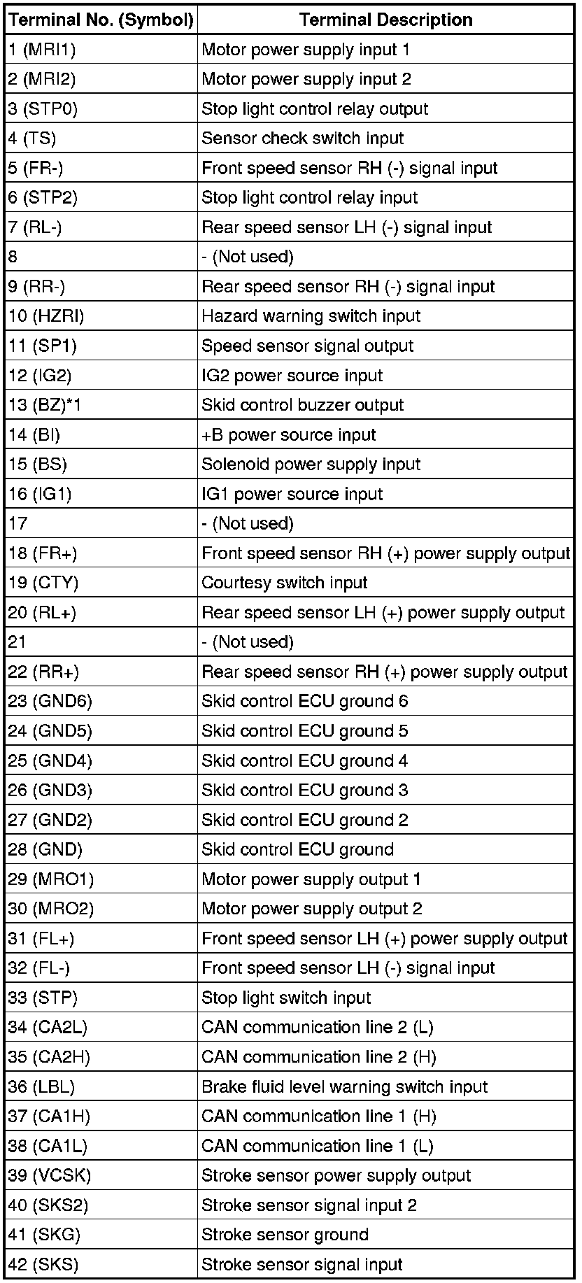 BRAKE CONTROL / DYNAMIC CONTROL SYSTEMS: ELECTRONICALLY CONTROLLED BRAKE SYSTEM: TERMINALS OF ECU
