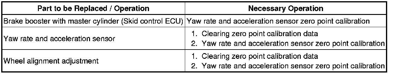 (a) After replacing any VSC related components or performing wheel alignment adjustment, clear and read the sensor calibration data.