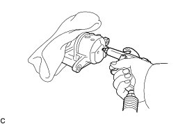 (b) Apply compressed air to remove the front disc brake piston from the disc brake cylinder.