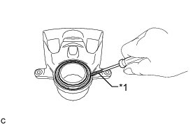 (a) Using a screwdriver with its tip wrapped with vinyl tape, remove the piston seal from the disc brake cylinder.