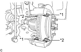 (a) Remove the 2 bolts and front disc brake cylinder mounting from the steering knuckle.