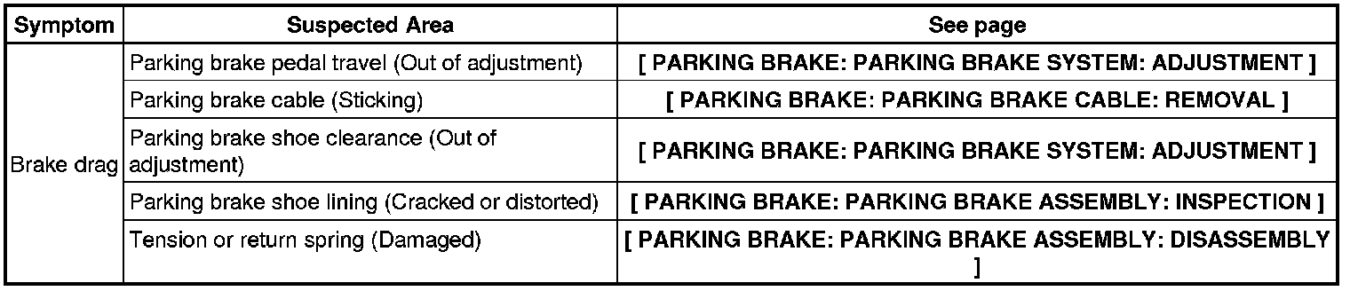PARKING BRAKE: PARKING BRAKE SYSTEM: PROBLEM SYMPTOMS TABLE