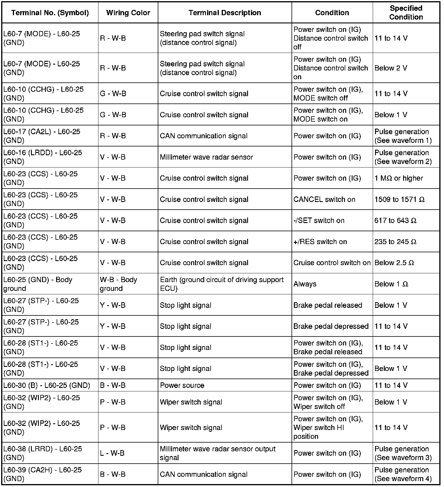 CRUISE CONTROL: DYNAMIC RADAR CRUISE CONTROL SYSTEM: TERMINALS OF ECU
