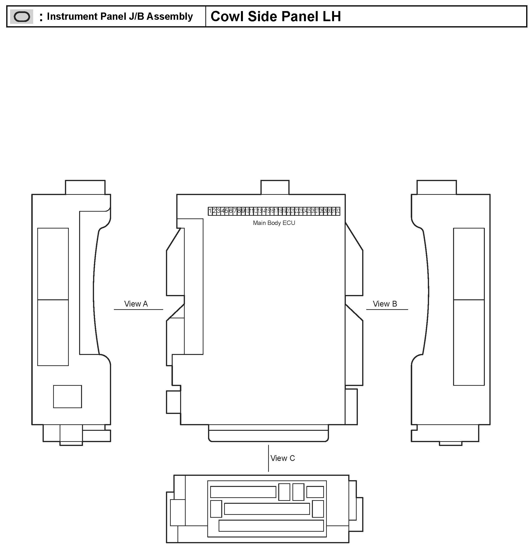 32 - Instrument Panel J/B Assembly - Cowl Side Panel LH: