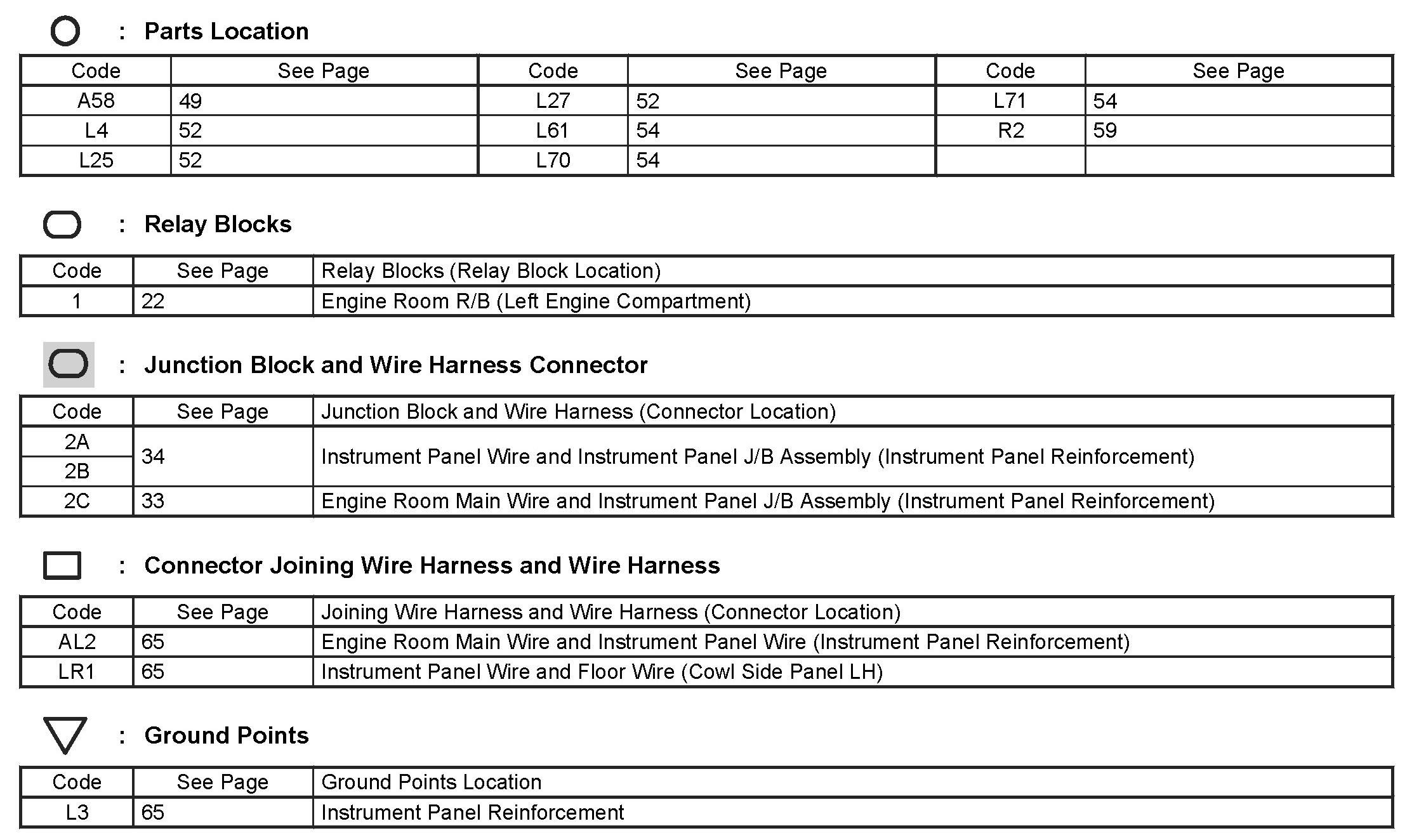 Locations: The locations of components, connectors, ground points, and splices referred to within these diagrams can be found at Vehicle Locations. Locations