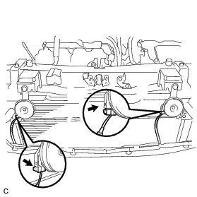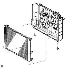 (c) Remove the 2 bolts and radiator assembly.
